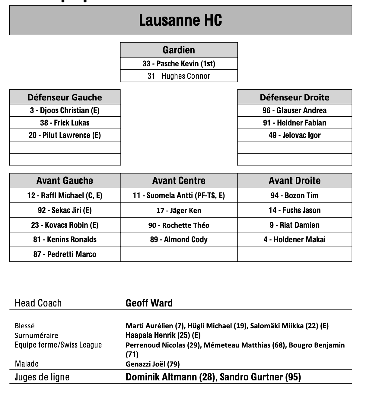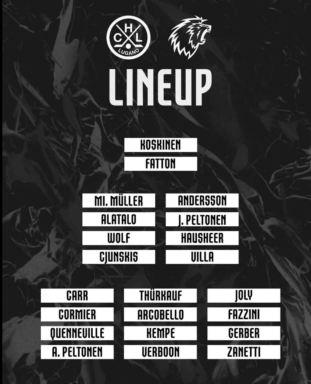 Aufstellung der Teams für das Spiel Lugano vs Lausanne 27/01/2024 Follow SwissHabs Neueste Artikel Vor 3 Stunden Die Sharks verlängern mit Stürmer Kiefer Sherwood für fünf Jahre Vor 5 Stunden HC Lugano: Das Kader im Überblick Vor 8 Stunden Ambri verlängert mit Jussi Tapola und verpflichtet Petr Kodytek Vor 9 Stunden Robin Grossmann verpasst die letzten Spiele der Regular Season Vor 13 Stunden Einige Wochen Pause für Dominic Zwerger