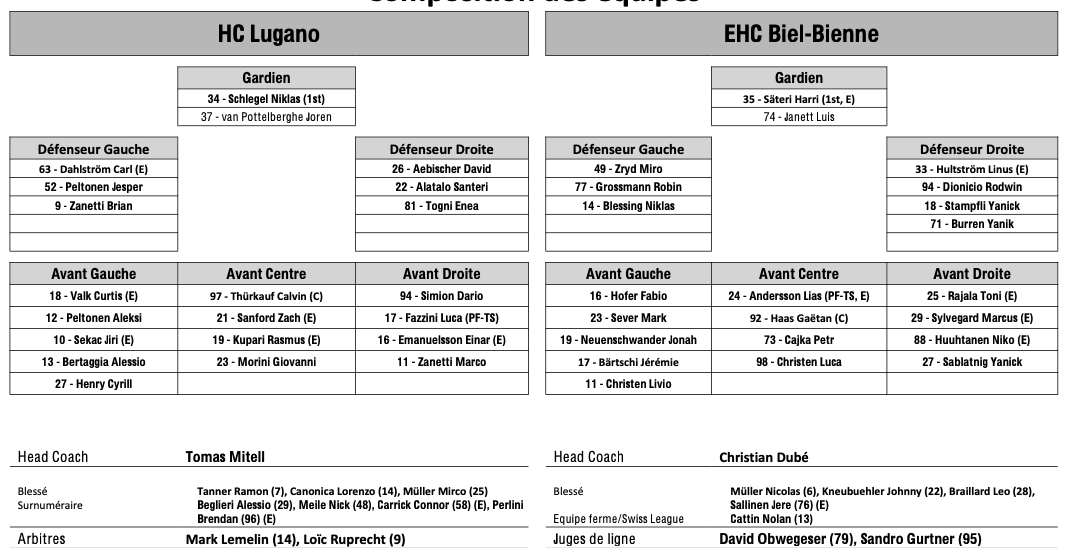 Aktuelle Informationen zur Aufstellung und den verletzungsbedingten Ausfällen im Spiel Lugano gegen Biel.