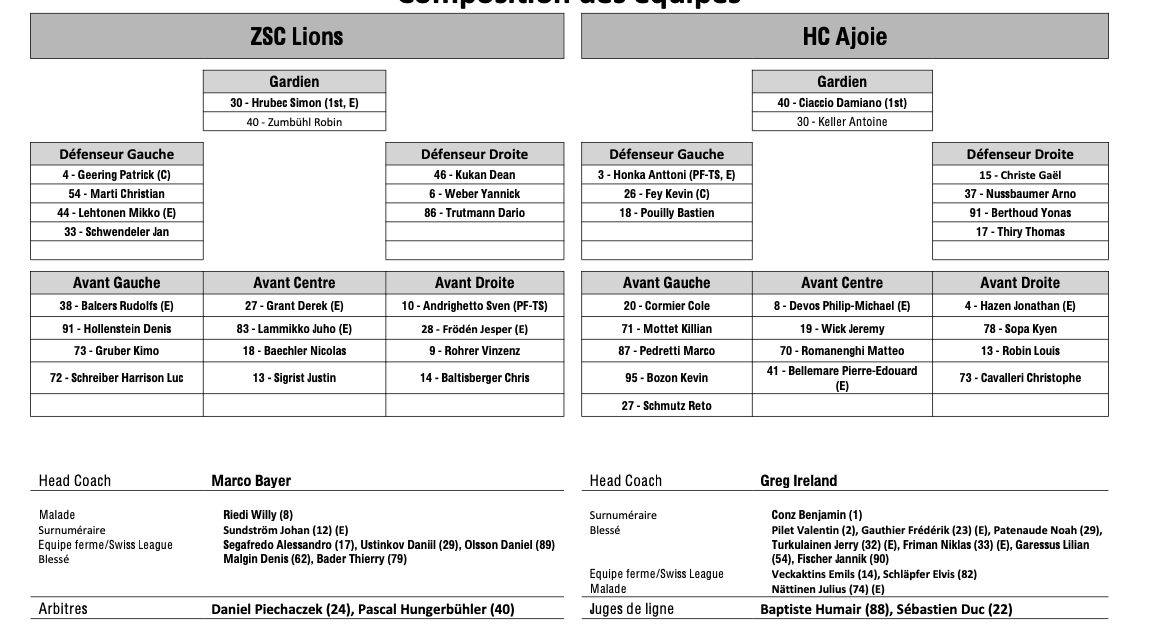 Aufstellung und Ausfälle: ZSC Lions vs. HC Ajoie 24/02/2026 Follow SwissHabs Neueste Artikel Vor einer Stunde Aufstellung und Ausfälle: Davos gegen Langnau Vor einer Stunde Aufstellung und Ausfälle: Rapperswil vs. Genf – Vor einer Stunde Aufstellung und Ausfälle: Ambri vs. Lausanne Vor einer Stunde Aufstellungen und Ausfälle: Zug vs. Fribourg Vor einer Stunde Aufstellung und Ausfälle: ZSC Lions vs. HC Ajoie