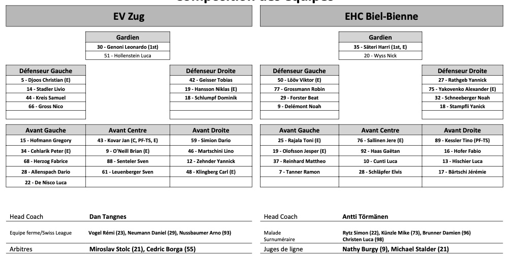 Bildung von den Mannschaften und Spielern, die für das Spiel zwischen Zug vs Biel nicht verfügbar sind 07/10/2022 Follow SwissHabs Neueste Artikel Vor 3 Stunden Ludvig Johnson: Regelmässiger Austausch mit seiner NHL-Franchise Vor 4 Stunden EHC Chur: Björn Gerhard mit klarer Vision für die Zukunft der Swiss League Vor 6 Stunden Neuer Zuschauerrekord für Fraueneishockey-Match in den USA Vor 6 Stunden Lars Steiner und Guus Van der Kaaij treffen ins Netz Vor 6 Stunden NHL: Akira Schmid und die Golden Knights unterliegen den Capitals