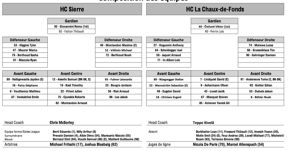 Vor einer Stunde Swiss League Playoff-Finale, Spiel 5: Teamaufstellungen und Absenzen für das Duell Sierre vs. La Chaux-de-Fonds