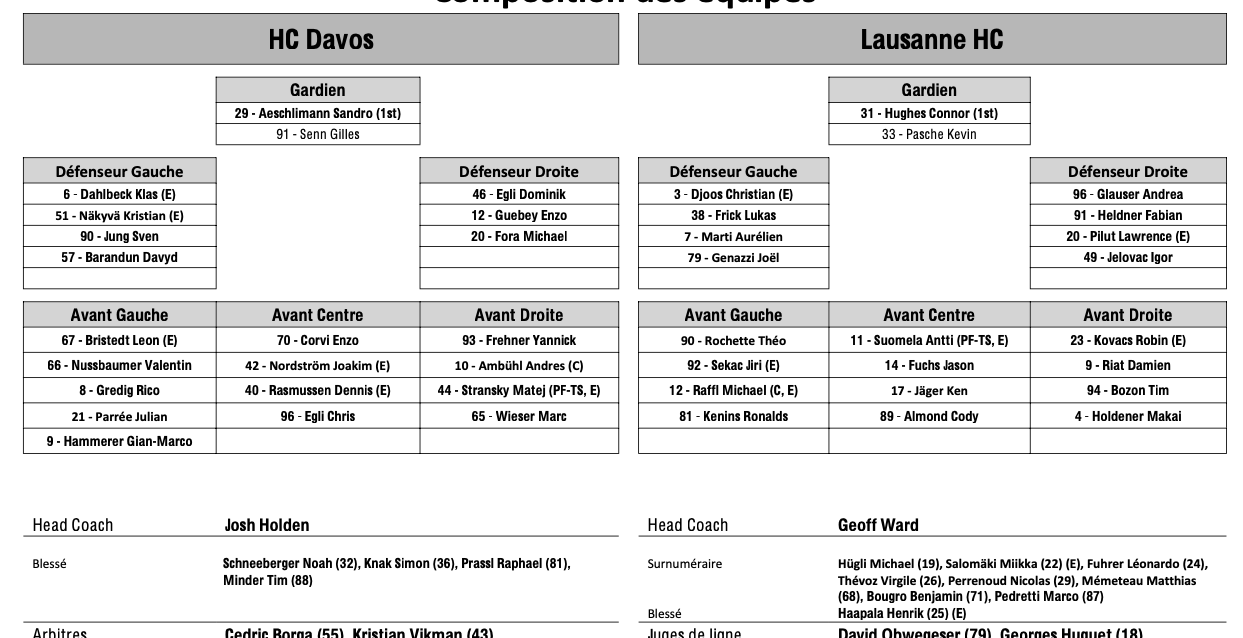 Teamaufstellung und nicht verfügbare Spieler für das Spiel Davos vs. Lausanne 18/02/2024 Follow SwissHabs Neueste Artikel Vor 7 Minuten U18- und U21-Elit: Start der Playoffs und der Ranking Round Vor einer Stunde Doppelpack und erster Stern für Lian Bichsel Vor 2 Stunden Niemand wollte Chris DiDomenico in der Schweiz – Jussi Tapolas Position ebenfalls angeschlagen Vor 2 Stunden Nino Niederreiter: Mehrere Wochen Zwangspause Vor 3 Stunden Die Oilers verpflichten Connor Murphy von Chicago