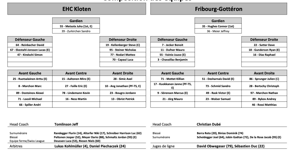 Teamaufstellung und nicht verfügbare Spieler für das Spiel Kloten vs Fribourg 01/11/2022 Follow SwissHabs Neueste Artikel Vor einer Stunde EHC Chur: Björn Gerhard mit klarer Vision für die Zukunft der Swiss League Vor 2 Stunden Neuer Zuschauerrekord für Fraueneishockey-Match in den USA Vor 2 Stunden Lars Steiner und Guus Van der Kaaij treffen ins Netz Vor 2 Stunden NHL: Akira Schmid und die Golden Knights unterliegen den Capitals Vor 9 Stunden Nino Niederreiter: NHL-Saison vorzeitig beendet