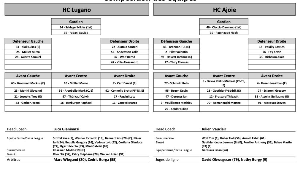 Teamaufstellung und nicht verfügbare Spieler für das Spiel Lugano vs. Ajoie 27/01/2023 Follow SwissHabs Neueste Artikel Vor 2 Stunden PostFinance Women's League: Start der Pre-Playoffs, Playouts finden nicht statt Vor 2 Stunden Weitere bemerkenswerte Ereignisse der NHL-Nacht und der kommenden Nacht Vor 3 Stunden Connor McDavid erreicht zum sechsten Mal in Folge 100 Punkte Vor 4 Stunden Benoît Groulx schliesst Verlängerung mit Zug nicht aus Vor 4 Stunden Kurze Auszeit für Damiano Ciaccio