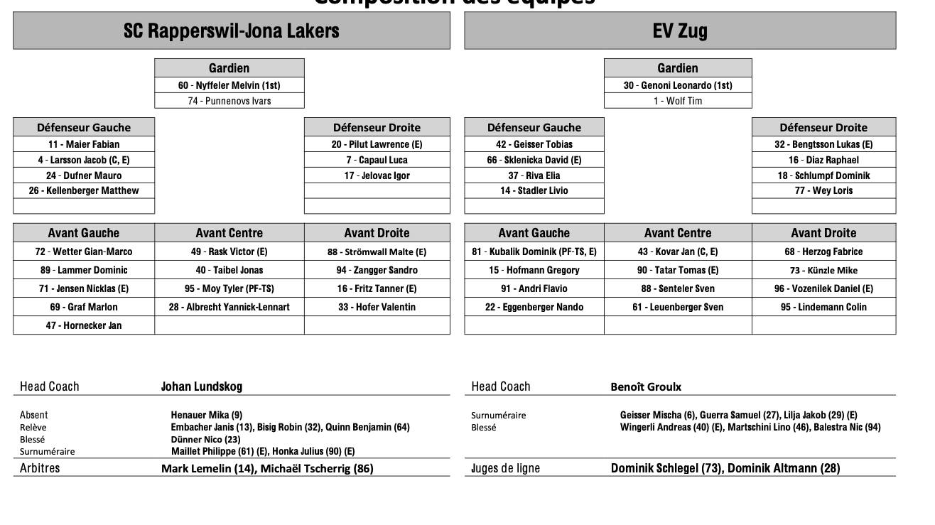 Teamaufstellungen und fehlende Spieler für das Spiel Rapperswil vs. Zug 14/03/2026 Follow SwissHabs Neueste Artikel Vor 2 Minuten HC Kloten Kader-Update: Reto Berra mit langfristiger Vision Vor 2 Stunden Drei NHL-Vertragsabschlüsse in der Nacht Vor 3 Stunden Alina Müller erreicht 50 Punkte in der PWHL Vor 3 Stunden Siegreiche Schweizer in der OHL Vor 3 Stunden Weitere bemerkenswerte Fakten aus dieser NHL-Nacht und dem bevorstehenden Spielabend