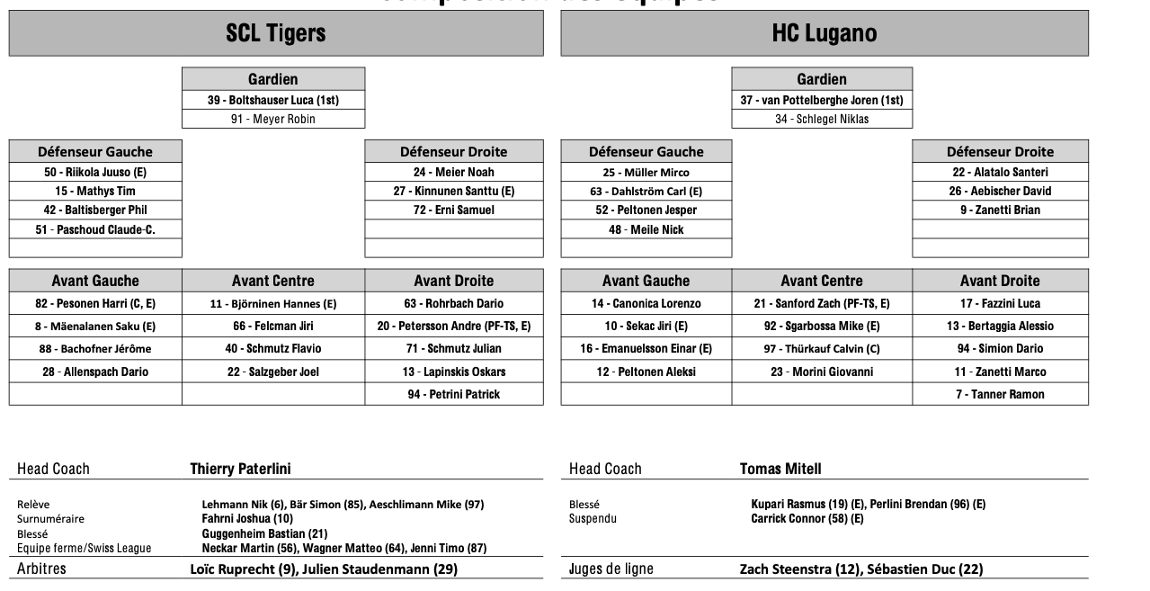 Teamaufstellung und nicht verfügbare Spieler für das Spiel Langnau vs. Lugano