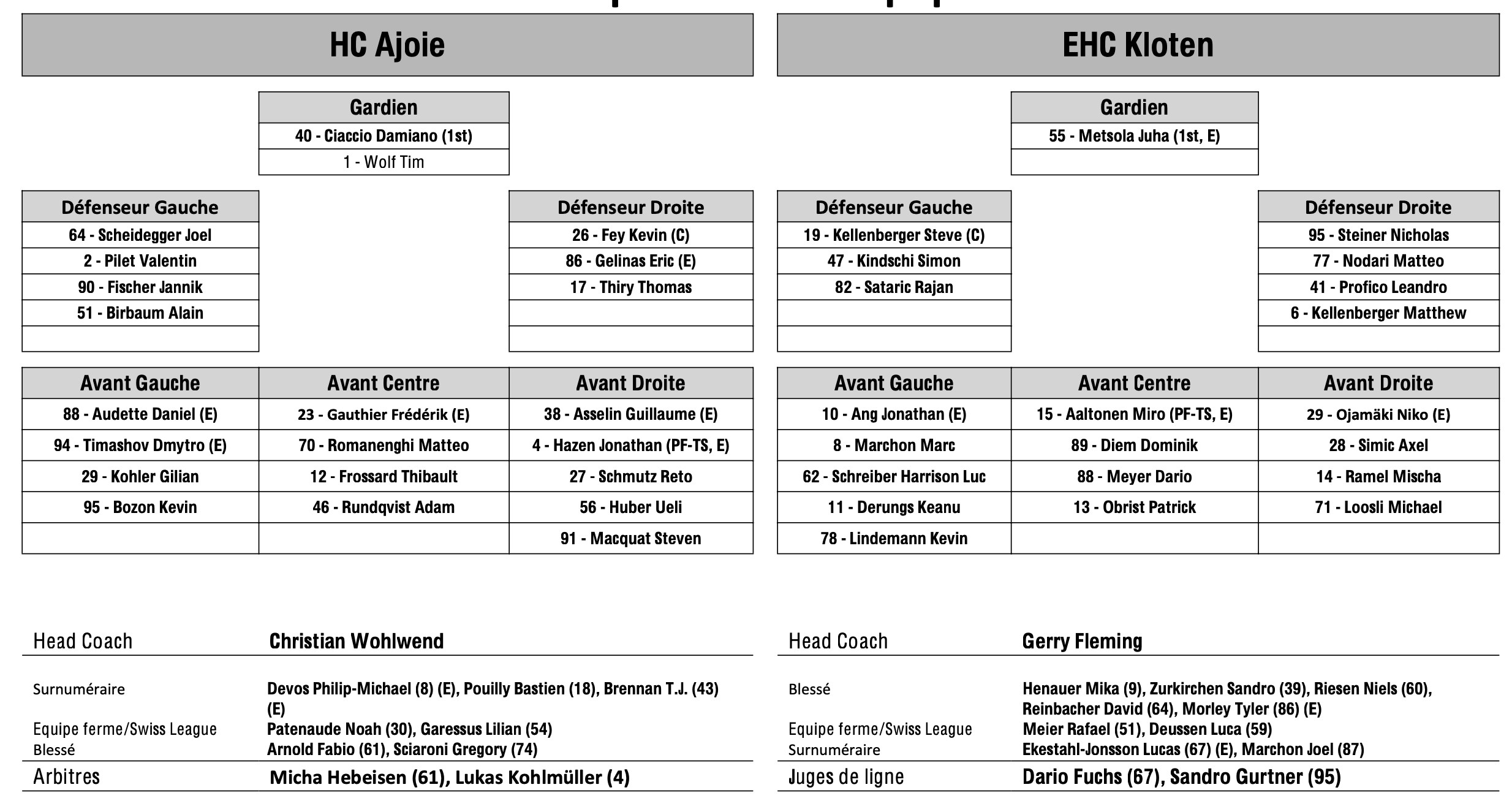 Teamaufstellung und nicht verfügbare Spieler für das Spiel Ajoie vs Kloten