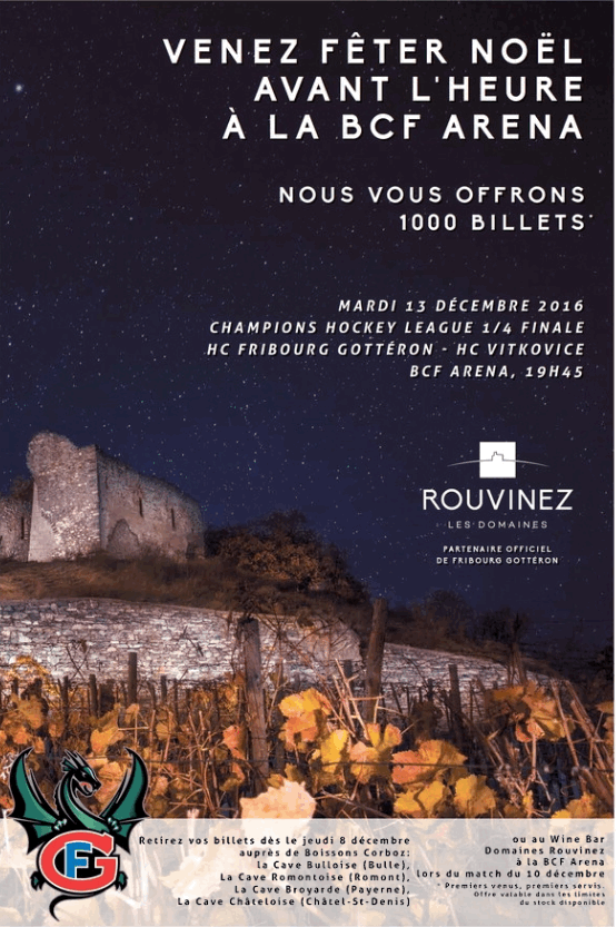 1'000 billets offerts pour le match retour de Gottéron en Champions Hockey League