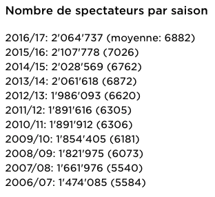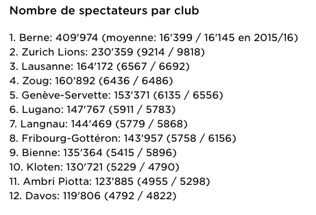 2 millions de spectateurs en LNA, les détails par clubs