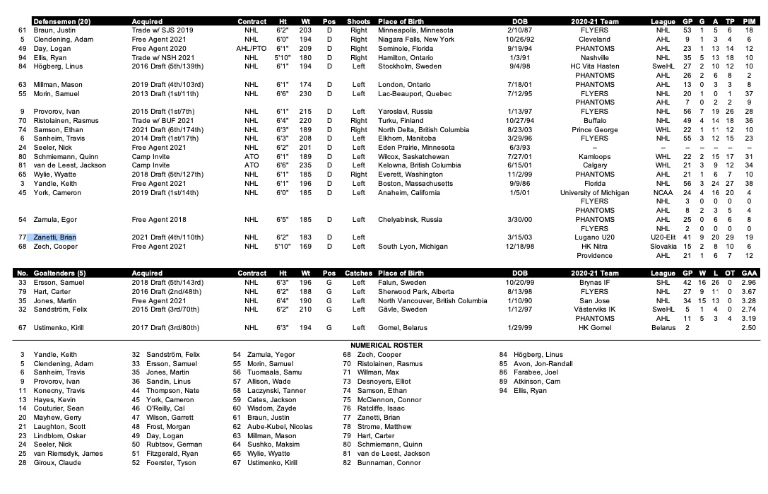 Il prendra en effet lui aussi part au camp principal des Flyers dont voici les joueurs invités.