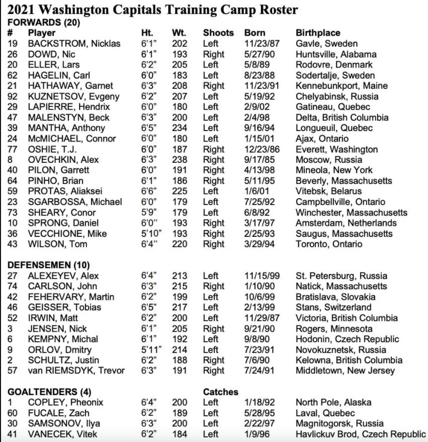 Axel Jonsson-Fjallby, Brett Leason et Joe Snively retournent à Hershey dans le club ferme de AHL. 34 joueurs sont encore présents avec les Caps :