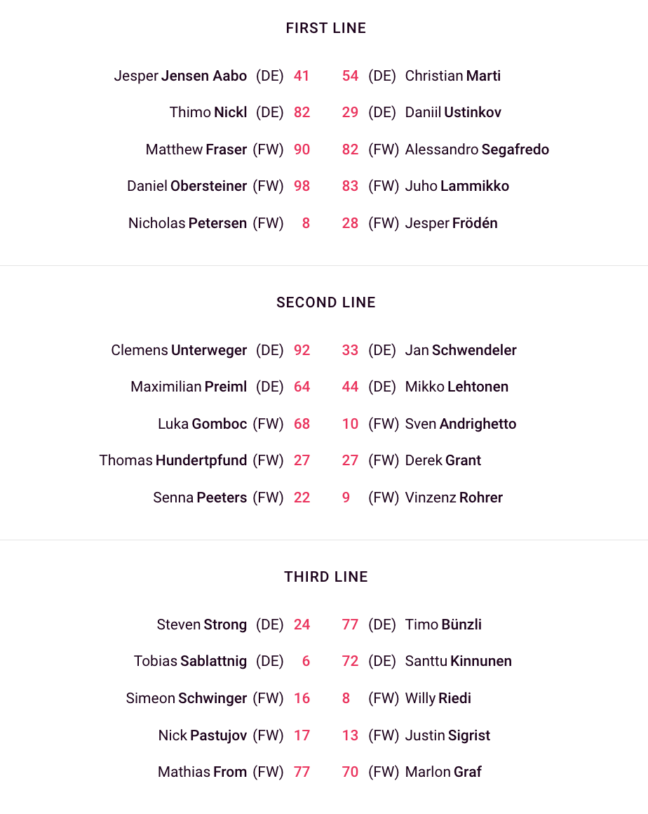 CHL : formation des équipes pour le match Klagenfurt vs Zurich 16/10/2024 Follow SwissHabs Derniers articles Il y a 14 minutes Echange entre les Flyers et le Wild Il y a 22 minutes Lars Steiner continue sa moisson de points Il y a 37 minutes Une soirée sans point pour nos Suisses de NHL Il y a 9 heures Plusieurs joueurs touchés du côté de Davos Il y a 11 heures Kevin Fiala aura un nouveau coach