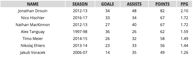 Comparaison de la saison de Nico Hischier avec celle de ses illustres prédécesseurs