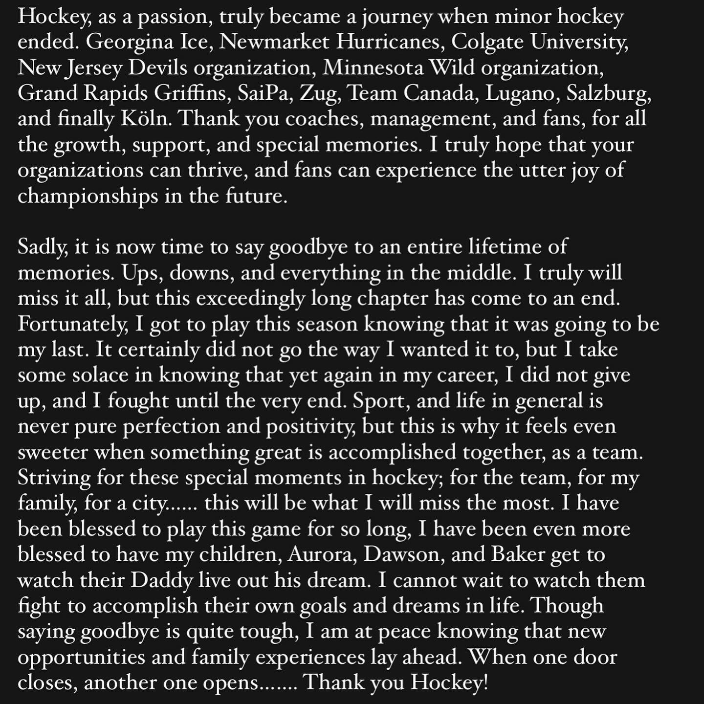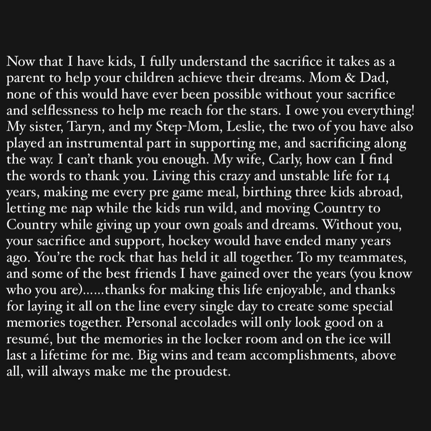 L'attaquant canadien David McIntyre, 37 ans, a en effet annoncé sa décision sur son compte Instagram :