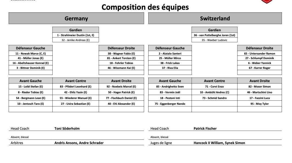 Deutschland Cup : la formation de la Suisse face à l'Allemagne 13/11/2021 Follow SwissHabs Derniers articles Il y a 46 minutes Finale de Swiss League acte II : formation des équipes pour le match La Chaux-de-Fonds vs Sierre Il y a 48 minutes Formation des équipes et joueurs indisponibles pour le match Lausanne vs Genève Il y a une heure Formation des équipes et joueurs indisponibles pour le match Ajoie vs Ambri Il y a 2 heures La sélection suisse U18 pour la préparation aux Mondiaux Il y a 3 heures La ligue a été clémente avec Simas Ignatavicius
