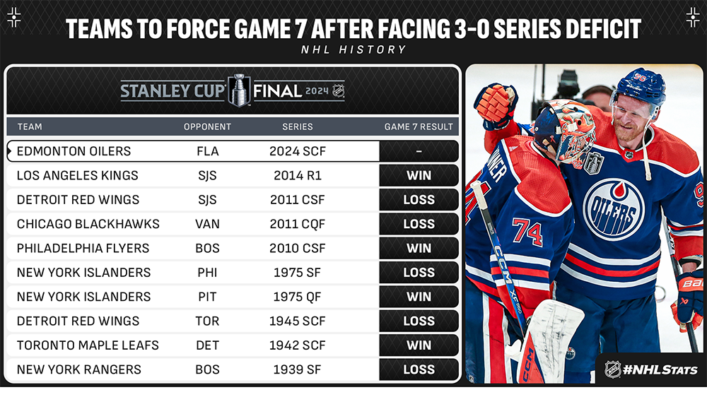 Les Oilers sont devenus la troisième équipe de l'histoire de la LNH à forcer un match 7 après avoir fait face à un déficit de 3-0 pendant la finale et la dixième à le faire dans n'importe quel tour des séries éliminatoires. Les neuf clubs précédents ont obtenu un résultat de 4-5 dans la confrontation entre le vainqueur et le vaincu.