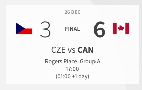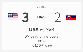 Etats-Unis, Suède et Canada débutent parfaitement leur tournoi 27/12/2021 Follow SwissHabs Derniers articles Il y a une heure Les autres faits à retenir de cette nuit de NHL et de celle à venir Il y a une heure Alex Ovechkin dépasse une marque de Brett Hull Il y a une heure Une quatrième saison avec au moins 120 points pour Connor McDavid Il y a 2 heures Les Suisses des Devils en feu Il y a 2 heures Retour complet sur la soirée de National League
