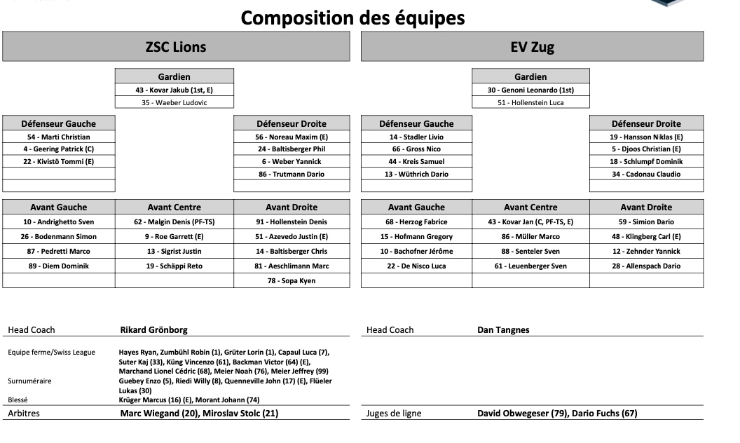 Formation des équipes et joueurs indisponibles pour l'acte VI Zurich vs Zoug 29/04/2022 Follow SwissHabs Derniers articles Il y a 13 minutes Senators et Blackhawks joueront en Allemagne l'hiver prochain Il y a 27 minutes Langnau confirme les changements au sein de son encadrement sportif Il y a une heure Ajoie annonce une licence B avec le meilleur buteur de Swiss League Il y a une heure Enfin une révolution pour la Swiss League ? Il y a une heure Aperçu de la finale de la PostFinance Women’s League