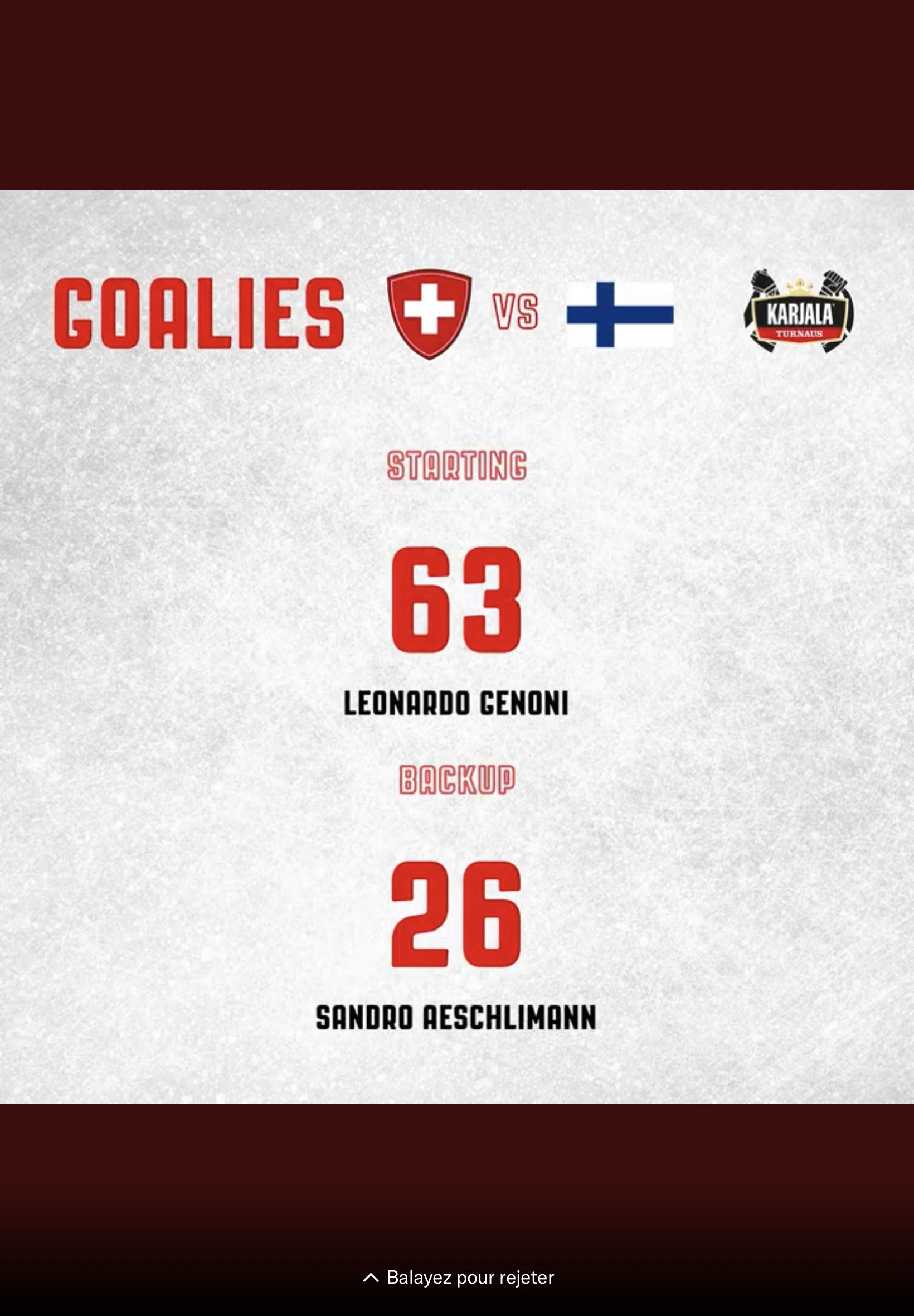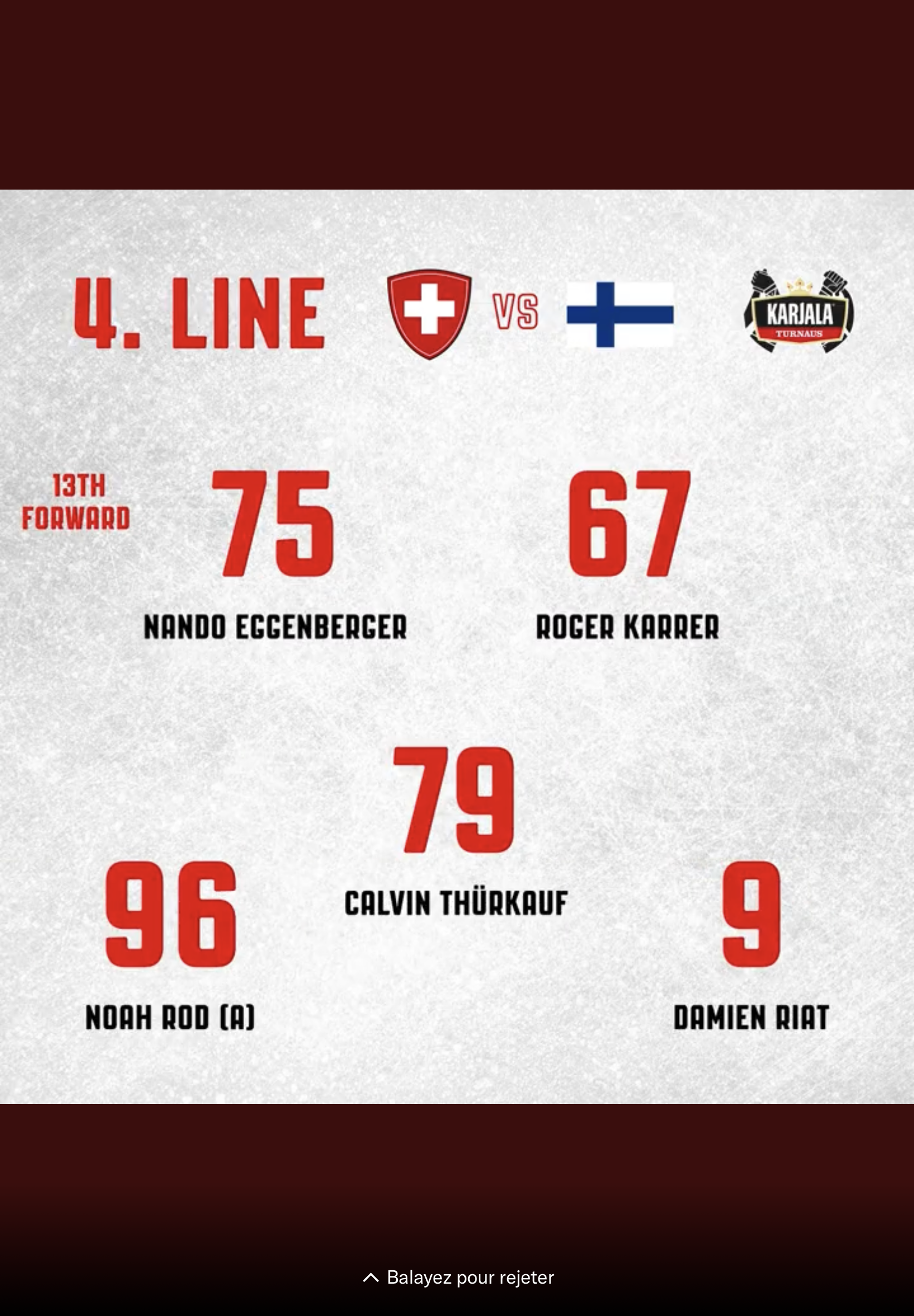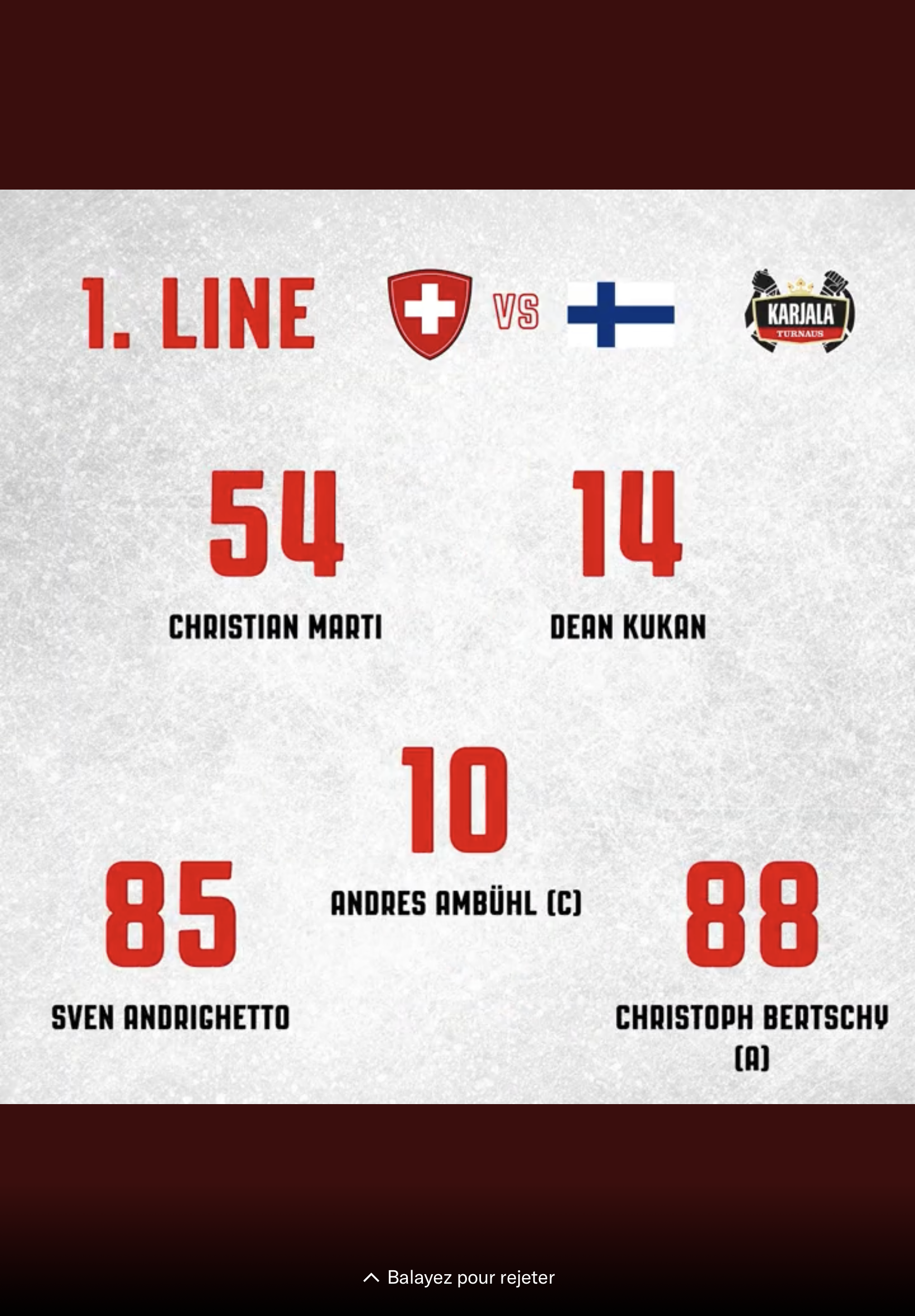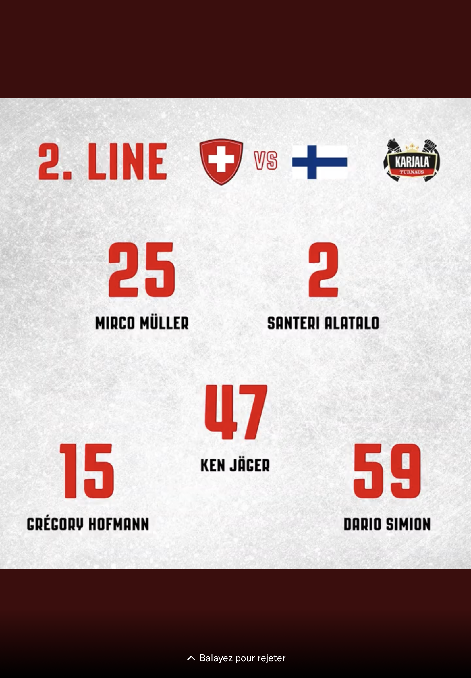 Formation des équipes pour le match Suisse vs Finlande