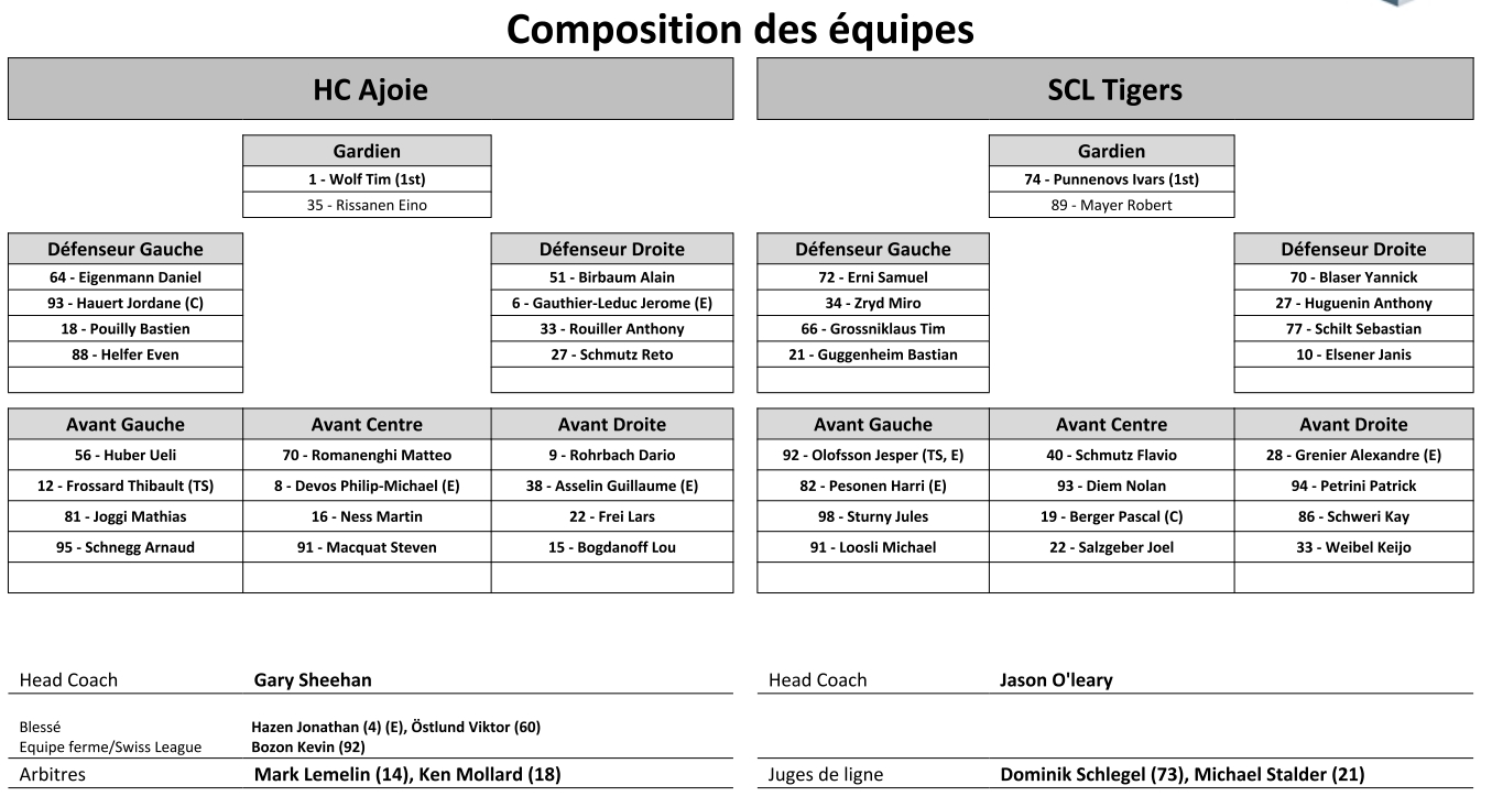 Il y a 3 jours Finale de Swiss League acte II : formation des équipes pour le match La Chaux-de-Fonds vs Sierre
