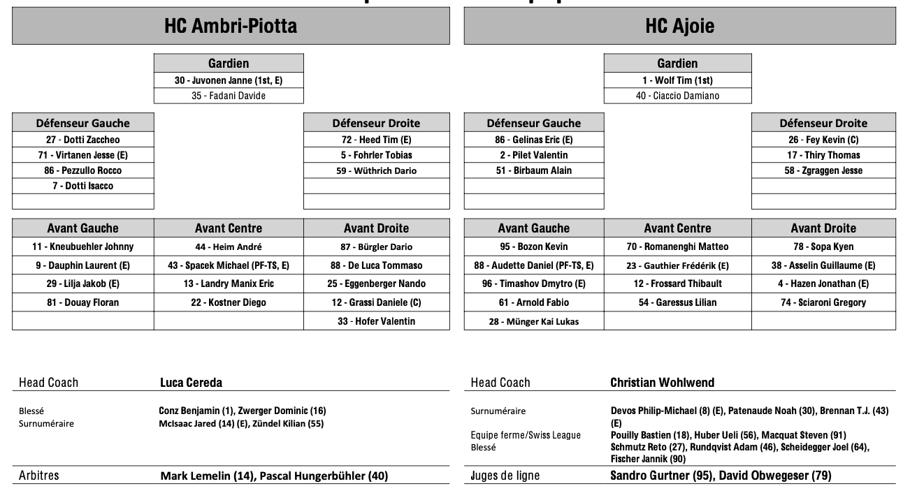 Formation des équipes et joueurs indisponibles pour le match Ambri vs Ajoie 21/02/2024 Follow SwissHabs Derniers articles Il y a 8 heures T.J. Brennan tient toujours la grande forme Il y a 10 heures Roger Bader reste à la tête de l'équipe d'Autriche Il y a 12 heures Comment Sierre prépare son éventuelle promotion en National League Il y a 13 heures Les Lakers vivront également un week-end important dans les urnes Il y a 13 heures La Chaux-de-Fonds lance un programme de soutien pour viser la National League
