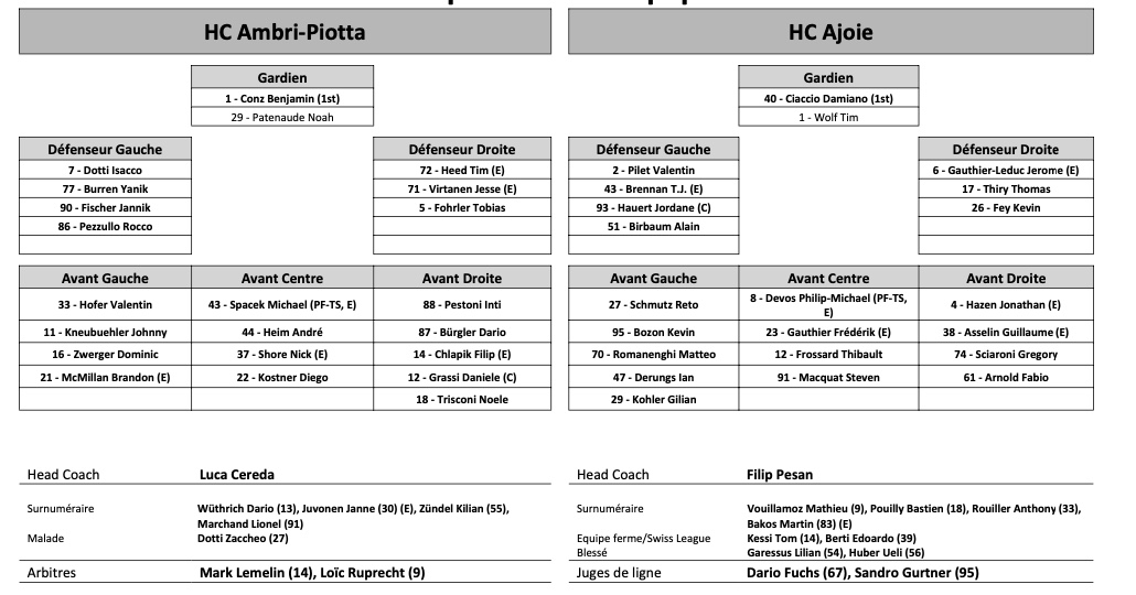 Formation des équipes et joueurs indisponibles pour le match Ambri vs Ajoie 28/10/2022 Follow SwissHabs Derniers articles Il y a 37 minutes Formation des équipes et joueurs indisponibles pour le match Zurich vs Genève Il y a 44 minutes Formation des équipes et joueurs indisponibles pour le match Davos vs Kloten Il y a 46 minutes Formation des équipes et joueurs indisponibles pour le match Lugano vs Lausanne Il y a 48 minutes Formation des équipes et joueurs indisponibles pour le match Langnau vs Rapperswil Il y a 50 minutes Formation des équipes et joueurs indisponibles pour le match Zoug vs Ambri