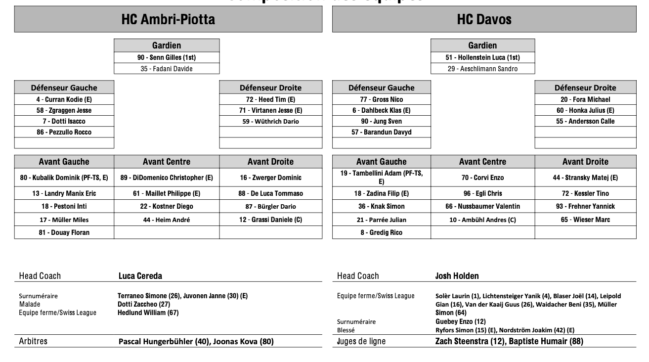 Formation des équipes et joueurs indisponibles pour le match Ambri vs Davos 07/12/2024 Follow SwissHabs Derniers articles Il y a 3 heures Les Sharks prolongent l'attaquant Kiefer Sherwood pour cinq ans Il y a 4 heures Tyler Myers à Dallas Il y a 5 heures Le point sur l'effectif de Lugano Il y a 7 heures Ambri prolonge Jussi Tapola et signe Petr Kodytek Il y a 8 heures Robin Grossmann manquera les derniers matchs de la saison régulière