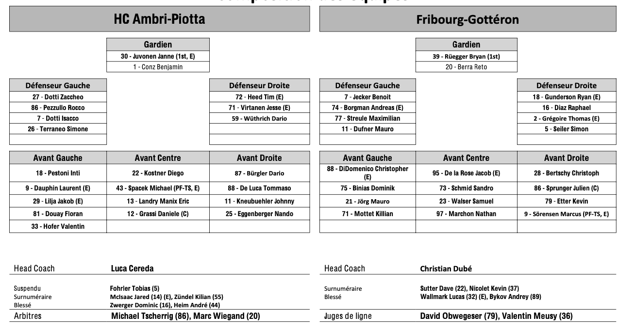 Formation des équipes et joueurs indisponibles pour le match Ambri vs Fribourg 02/03/2024 Follow SwissHabs Derniers articles Il y a 14 minutes Echange entre les Flyers et le Wild Il y a 22 minutes Lars Steiner continue sa moisson de points Il y a 37 minutes Une soirée sans point pour nos Suisses de NHL Il y a 9 heures Plusieurs joueurs touchés du côté de Davos Il y a 11 heures Kevin Fiala aura un nouveau coach