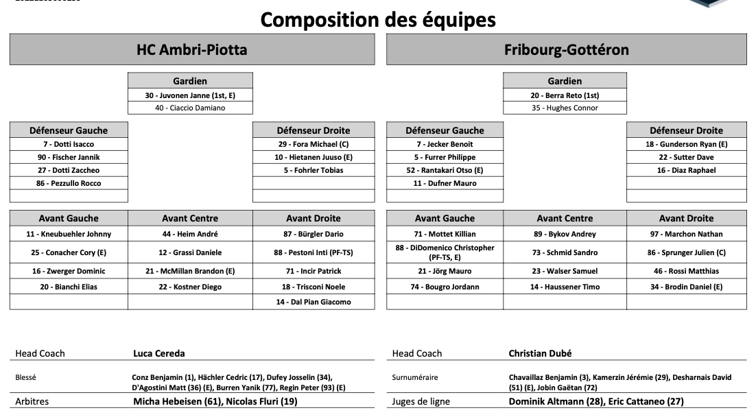 Formation des équipes et joueurs indisponibles pour le match Ambri vs Fribourg 08/03/2022 Follow SwissHabs Derniers articles Il y a 11 minutes EHC Seewen vs. Hockey Huttwil : l’affiche pour le titre de MyHockey League Il y a 34 minutes Yanis Lutz devrait honorer sa seconde saison en OHL Il y a 2 heures Félicien Du Bois était tout proche de rejoindre les Red Wings de Détroit Il y a 3 heures Les autres faits à retenir de cette nuit de NHL et de celle à venir Il y a 4 heures Plus de saisons de 20 buts pour un défenseur de NHL