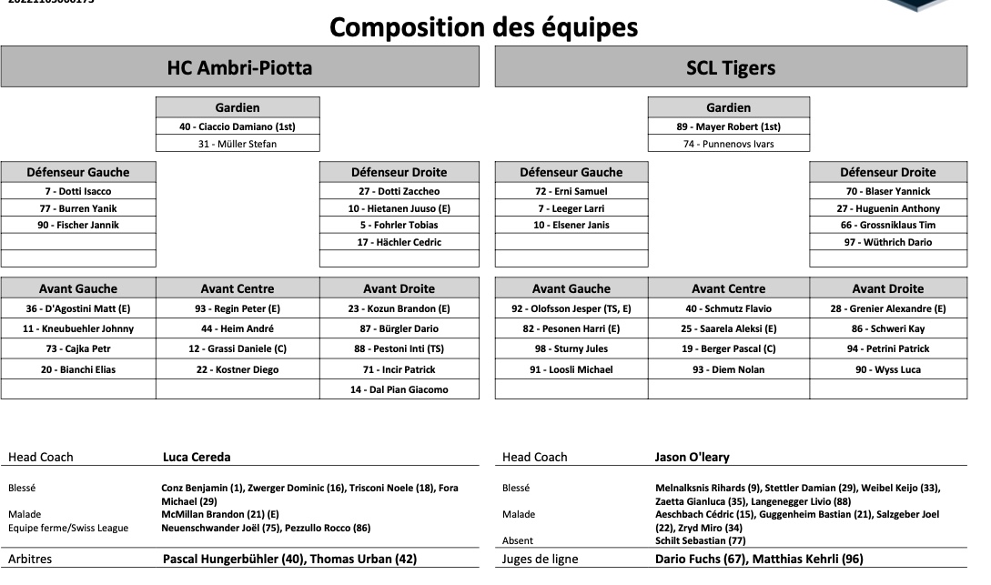 Formation des équipes et joueurs indisponibles pour le match Ambri vs Langnau 07/12/2021 Follow SwissHabs Derniers articles Il y a une heure Houston toujours plébiscité par les joueurs pour une nouvelle franchise de NHL, Paris un peu moins populaire Il y a 3 heures Les autres faits à retenir de cette nuit de NHL et de celle à venir Il y a 3 heures Les Huskies font le break, c'est plus compliqué pour les autres équipes Il y a 3 heures Lian Bichsel marque avec le crosse d'un adversaire, 12e de la saison pour Pius Suter Il y a 3 heures Retour complet sur la soirée de National League