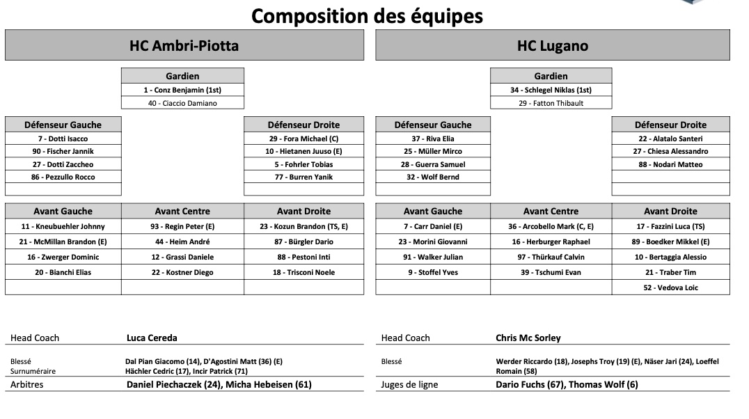 Formation des équipes et joueurs indisponibles pour le match Ambri vs Lugano 01/10/2021 Follow SwissHabs Derniers articles Il y a 56 minutes Lugano va grandement renouveler ses étrangers Il y a 2 heures Cas Nemeth : le Tribunal du Sport de la Fédération rejette l’appel Il y a 3 heures Deux officialisations de contrat attendues du côté d'Ambri Il y a 3 heures Un avenir très incertain pour Denis Hollenstein Il y a 5 heures Plusieurs mouvements encore attendus autour du HC Bienne, mais Lucas Wallmark n'est pas concerné