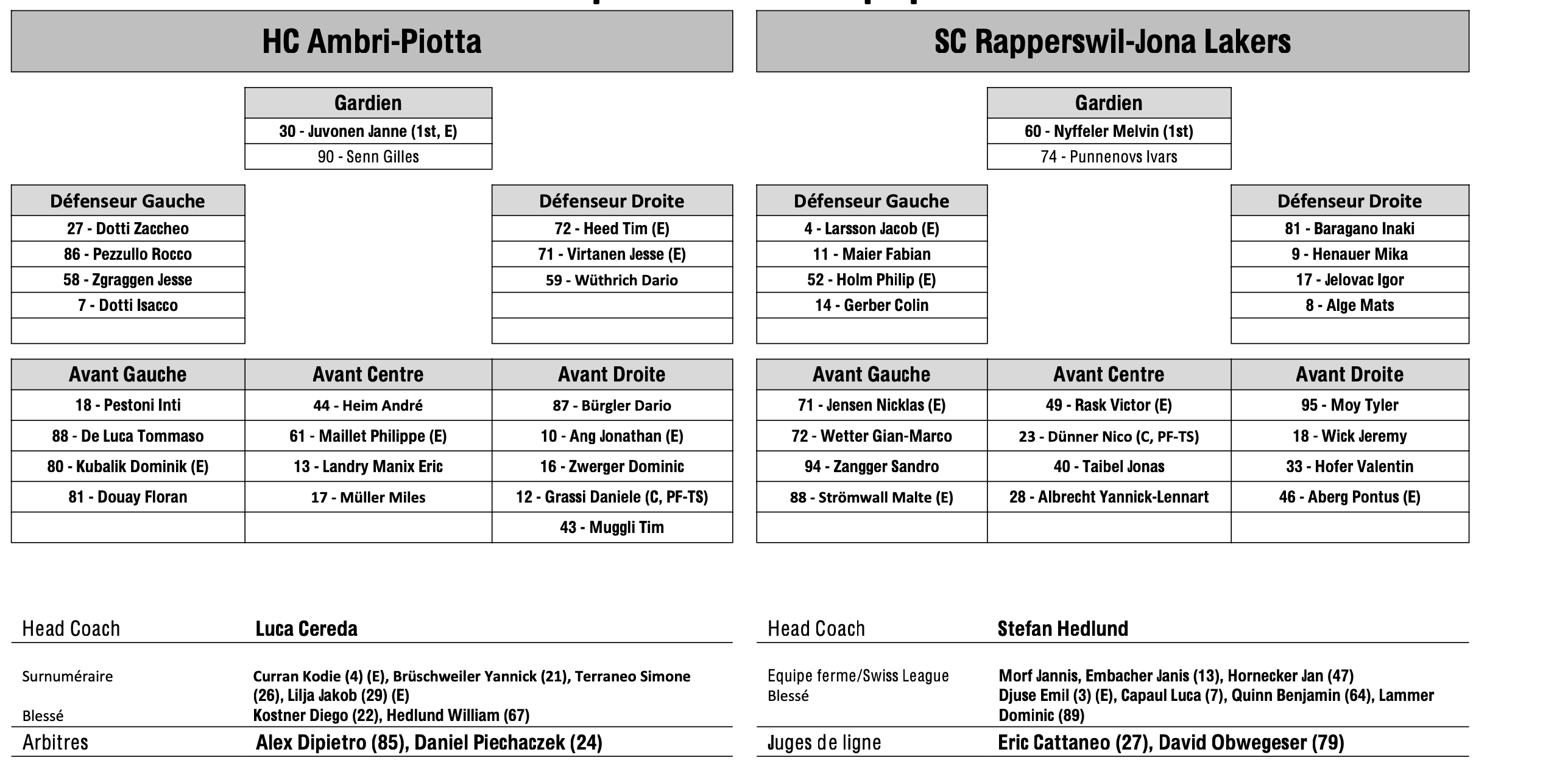 Formation des équipes et joueurs indisponibles pour le match Ambri vs Rapperswil 17/09/2024 Follow SwissHabs Derniers articles Il y a 3 heures La saison de NHL de Nino Niederreiter serait terminée Il y a 3 heures Les images des matchs de la soirée en National League Il y a 9 heures Formation des équipes et joueurs indisponibles pour le match Bienne vs Zoug Il y a 9 heures Formation des équipes et joueurs indisponibles pour le match Rapperswil vs Fribourg Il y a 9 heures Formation des équipes et joueurs indisponibles pour le match Kloten vs Langnau