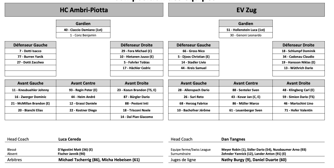 Il y a un jour Finale de Swiss League acte IV : formation des équipes et joueurs indisponibles pour le match La Chaux-de-Fonds vs Sierre
