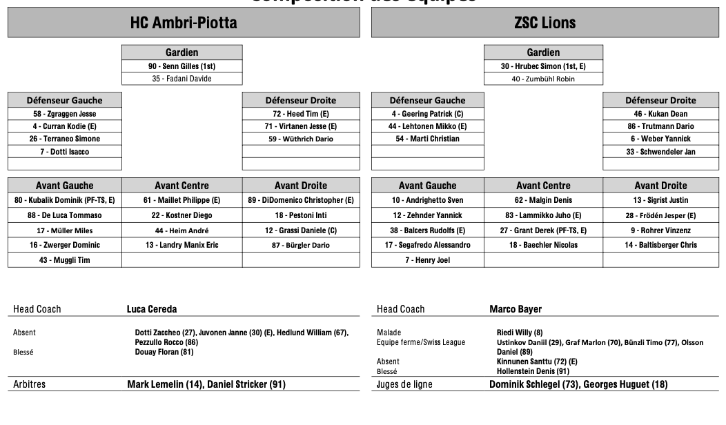 Formation des équipes et joueurs indisponibles pour le match Ambri vs Zurich 17/01/2025 Follow SwissHabs Derniers articles Il y a 54 minutes Les Swiss Devils célèbrent la cuisine helvète au New Jersey Il y a 2 heures Un match de suspension et une amende contre Jakob Lee Il y a 3 heures Davos et Fribourg joueront la ligue des champions Il y a 3 heures Ouverture d'une procédure ordinaire contre Malte Strömwall Il y a 4 heures Emil Pettersson suscite de l'intérêt sur le marché suisse
