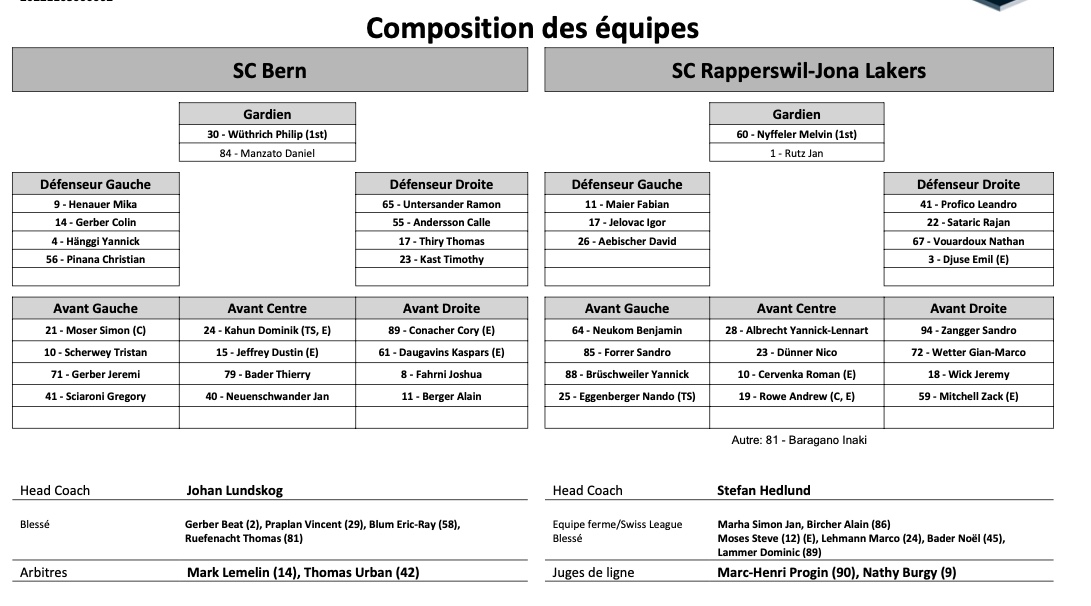 Formation des équipes et joueurs indisponibles pour le match Berne vs Rapperswil 01/10/2021 Follow SwissHabs Derniers articles Il y a 51 minutes Lugano va grandement renouveler ses étrangers Il y a 2 heures Cas Nemeth : le Tribunal du Sport de la Fédération rejette l’appel Il y a 3 heures Deux officialisations de contrat attendues du côté d'Ambri Il y a 3 heures Un avenir très incertain pour Denis Hollenstein Il y a 5 heures Plusieurs mouvements encore attendus autour du HC Bienne, mais Lucas Wallmark n'est pas concerné