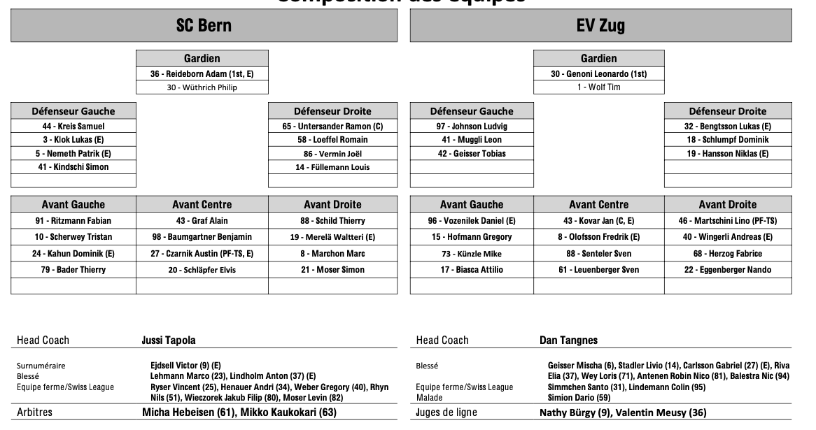 Formation des équipes et joueurs indisponibles pour le match Berne vs Zoug 17/01/2025 Follow SwissHabs Derniers articles Il y a 54 minutes Les Swiss Devils célèbrent la cuisine helvète au New Jersey Il y a 2 heures Un match de suspension et une amende contre Jakob Lee Il y a 3 heures Davos et Fribourg joueront la ligue des champions Il y a 3 heures Ouverture d'une procédure ordinaire contre Malte Strömwall Il y a 4 heures Emil Pettersson suscite de l'intérêt sur le marché suisse