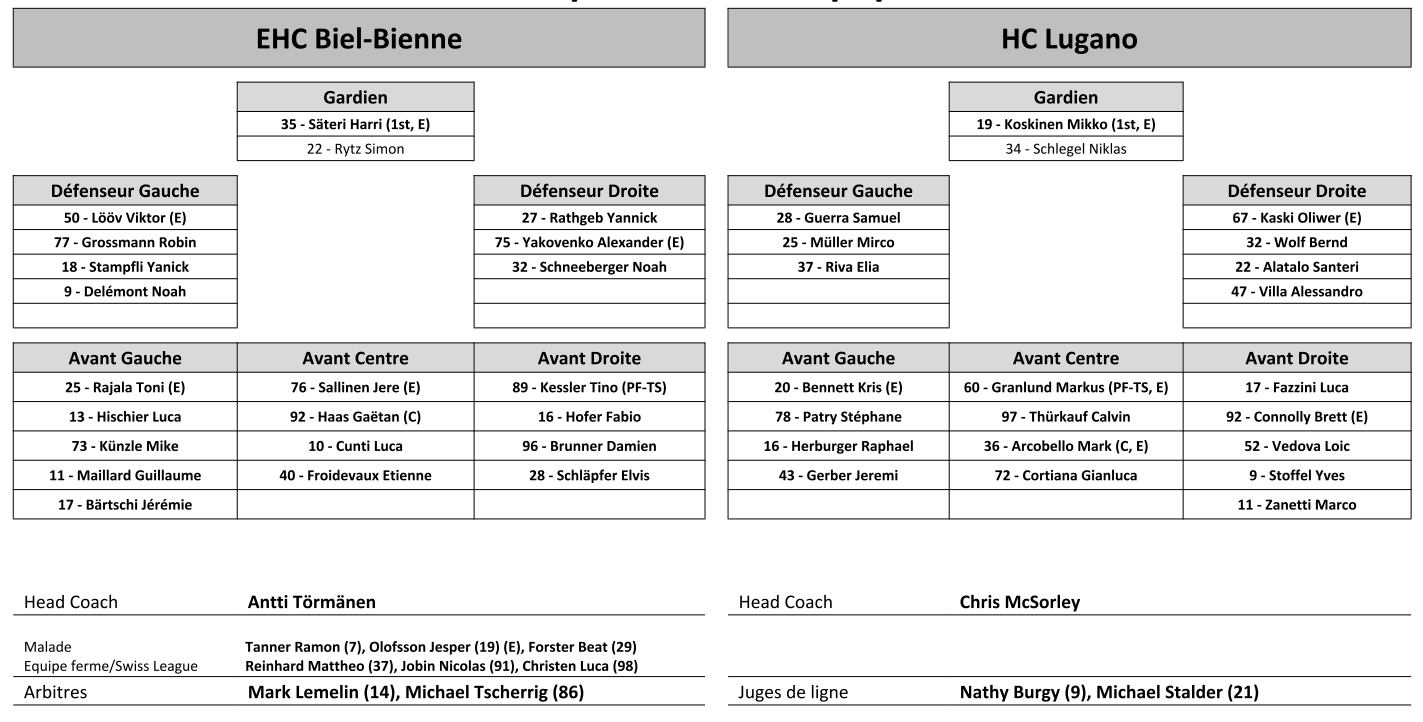 Formation des équipes et joueurs indisponibles pour le match Bienne vs Lugano 01/10/2022 Follow SwissHabs Derniers articles Il y a 8 heures T.J. Brennan tient toujours la grande forme Il y a 10 heures Roger Bader reste à la tête de l'équipe d'Autriche Il y a 12 heures Comment Sierre prépare son éventuelle promotion en National League Il y a 13 heures Les Lakers vivront également un week-end important dans les urnes Il y a 13 heures La Chaux-de-Fonds lance un programme de soutien pour viser la National League