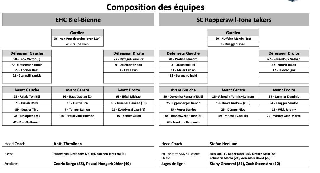 Il y a un jour Finale de Swiss League acte II : formation des équipes pour le match La Chaux-de-Fonds vs Sierre
