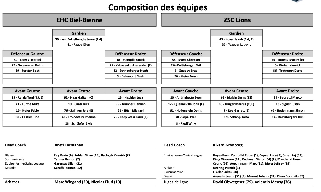 Formation des équipes et joueurs indisponibles pour le match Bienne vs Zurich 21/01/2022 Follow SwissHabs Derniers articles Il y a 30 minutes Formation des équipes et joueurs indisponibles pour le match Lugano vs Zurich Il y a 31 minutes Formation des équipes et joueurs indisponibles pour le match Lausanne vs Genève Il y a une heure Martigny ne compte pas stagner en 1ère ligue trop longtemps Il y a 2 heures Trois contrats d'entrée paraphés en NHL Il y a 4 heures Les Hurricanes et le Kraken se rendront à Helsinki pour la NHL Global Series