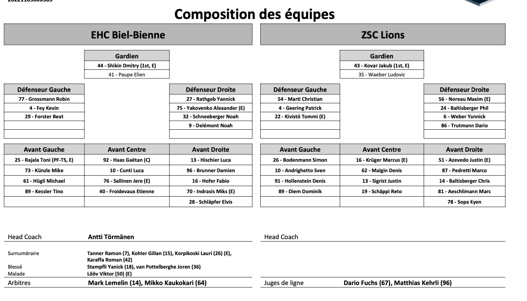 Formation des équipes et joueurs indisponibles pour le match Bienne vs Zurich 02/04/2022 Follow SwissHabs Derniers articles Il y a 4 heures Kaleigh Quennec invitée des Puckalistes Il y a 6 heures Gaël Christe restera avec Ajoie la saison prochaine Il y a 8 heures Formation des équipes et joueurs indisponibles pour le match Berne vs Rapperswil Il y a 8 heures Prague accueillera la Coupe du monde de hockey sur sol européen Il y a 11 heures Laure Mériguet de retour à la vie normale après le rêve de Milan-Cortina