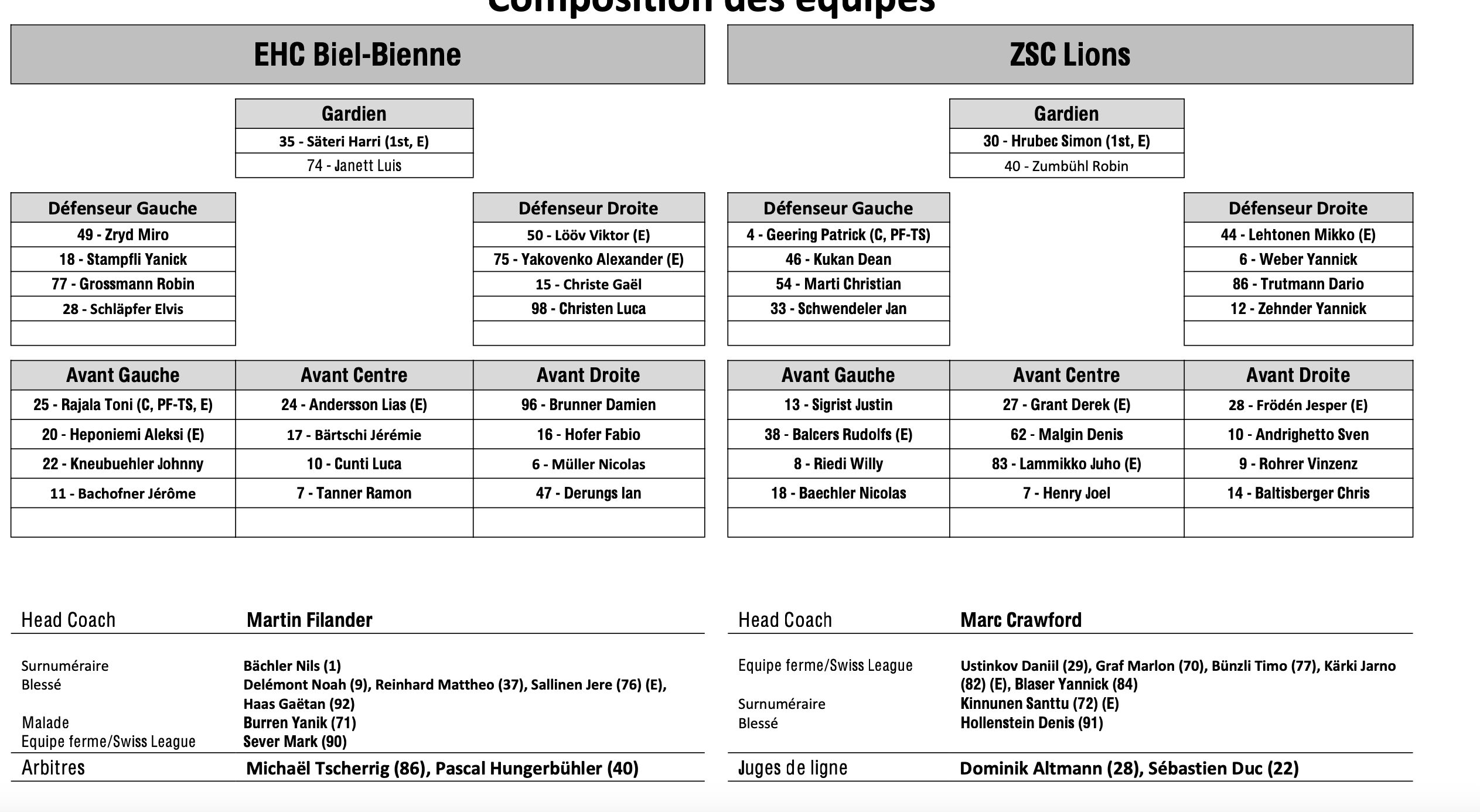 Formation des équipes et joueurs indisponibles pour le match Bienne vs Zurich 17/09/2024 Follow SwissHabs Derniers articles Il y a 3 heures La saison de NHL de Nino Niederreiter serait terminée Il y a 3 heures Les images des matchs de la soirée en National League Il y a 9 heures Formation des équipes et joueurs indisponibles pour le match Bienne vs Zoug Il y a 9 heures Formation des équipes et joueurs indisponibles pour le match Rapperswil vs Fribourg Il y a 9 heures Formation des équipes et joueurs indisponibles pour le match Kloten vs Langnau