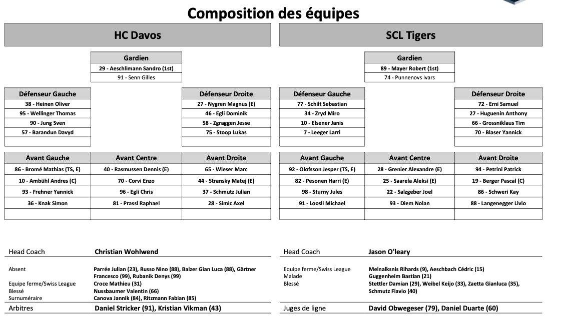 Formation des équipes et joueurs indisponibles pour le match Davos vs Langnau 30/11/2021 Follow SwissHabs Derniers articles Il y a 9 heures Formation des équipes et joueurs indisponibles pour le match Genève vs Lausanne Il y a 10 heures Luc Tardif quittera la présidence de l’IIHF en octobre Il y a 13 heures Finale de Swiss League acte I : formation des équipes et joueurs indisponibles pour le match Sierre vs La Chaux-de-Fonds Il y a 15 heures « Une phase de transition » : Reto Kläy fait le point après l’élimination et se met à la quête d'un coach Il y a 15 heures Pour le plaisir : le bien joli but de Matthew Tkachuk