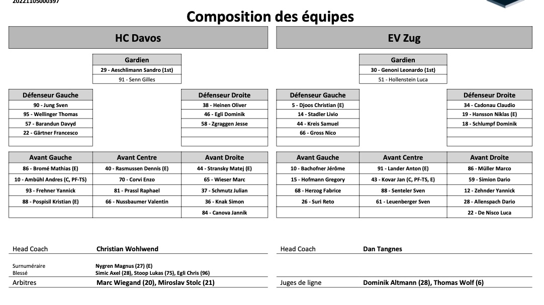 Formation des équipes et joueurs indisponibles pour le match Davos vs Zoug 14/04/2022 Follow SwissHabs Derniers articles Il y a 7 heures A voir : NHL My World, la série complète Il y a 12 heures Rien de grave pour Igor Chernyshov après cette terrible scène la nuit dernière Il y a 12 heures Simon Hrubec se développe en Suisse avec son initiative Saves Help Il y a 14 heures La fille d' Yves Sarault est une sacrée championne Il y a 15 heures Benjamin Rautiainen bat un record de Saku Koivu