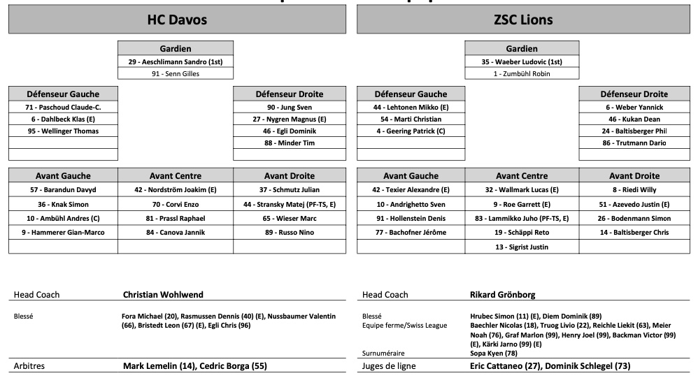 Formation des équipes et joueurs indisponibles pour le match Davos vs Zurich 29/10/2022 Follow SwissHabs Derniers articles Il y a 6 heures Ludvig Johnson échange régulièrement avec sa franchise de NHL Il y a 8 heures EHC Coire : Björn Gerhard a une vision claire pour l'avenir de la Swiss League Il y a 8 heures Les autres faits à retenir de cette nuit de NHL et de celle à venir Il y a 9 heures Un nouveau record d'affluence pour un match féminin aux États-Unis Il y a 9 heures Lars Steiner et Guus Van der Kaaij trouvent le fond des filets