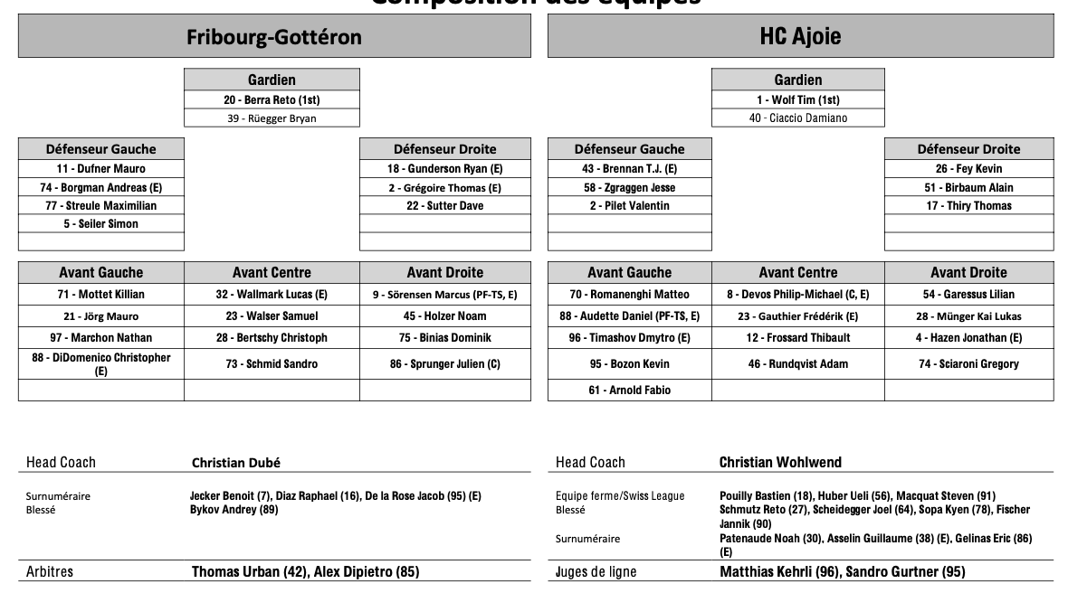 Formation des équipes et joueurs indisponibles pour le match Fribourg vs Ajoie 24/02/2024 Follow SwissHabs Derniers articles Il y a 2 heures T.J. Brennan tient toujours la grande forme Il y a 4 heures Roger Bader reste à la tête de l'équipe d'Autriche Il y a 6 heures Comment Sierre prépare son éventuelle promotion en National League Il y a 7 heures Les Lakers vivront également un week-end important dans les urnes Il y a 7 heures La Chaux-de-Fonds lance un programme de soutien pour viser la National League