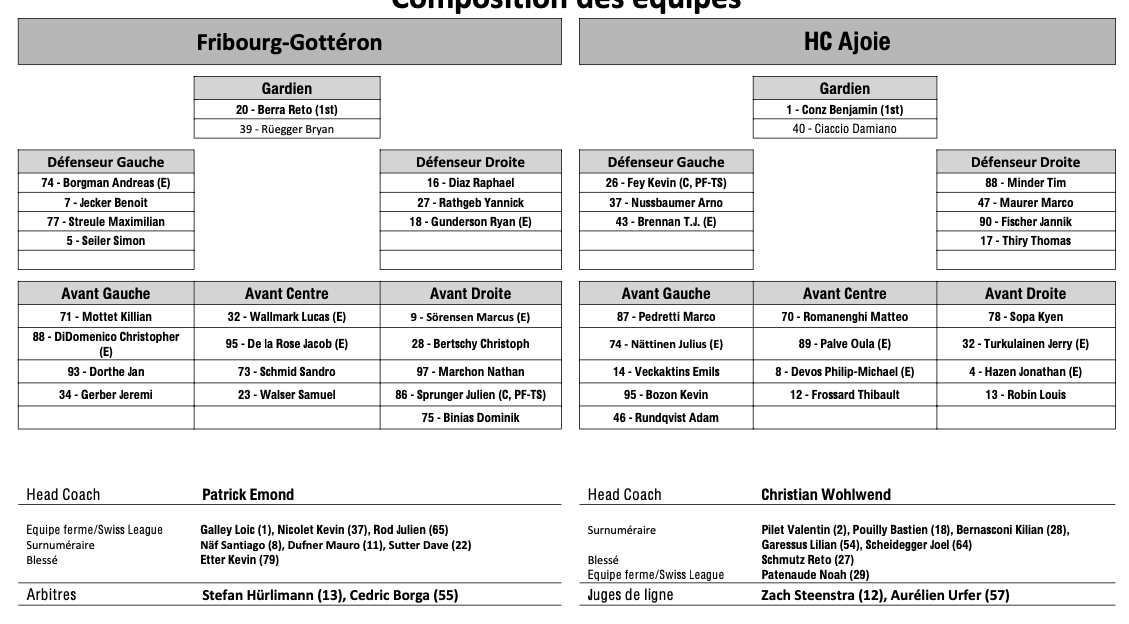 Formation des équipes et joueurs indisponibles pour le match Fribourg vs Ajoie 17/09/2024 Follow SwissHabs Derniers articles Il y a 3 heures La saison de NHL de Nino Niederreiter serait terminée Il y a 3 heures Les images des matchs de la soirée en National League Il y a 9 heures Formation des équipes et joueurs indisponibles pour le match Bienne vs Zoug Il y a 9 heures Formation des équipes et joueurs indisponibles pour le match Rapperswil vs Fribourg Il y a 9 heures Formation des équipes et joueurs indisponibles pour le match Kloten vs Langnau