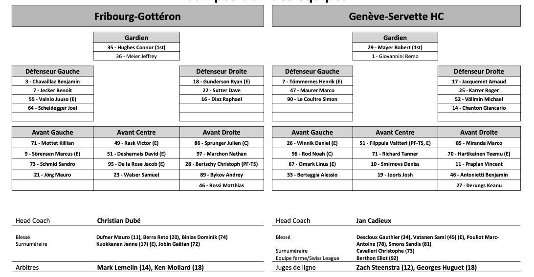 Formation des équipes et joueurs indisponibles pour le match Fribourg vs Genève 04/11/2022 Follow SwissHabs Derniers articles Il y a 18 minutes La saison de NHL de Nino Niederreiter serait terminée Il y a 24 minutes Les images des matchs de la soirée en National League Il y a 6 heures Formation des équipes et joueurs indisponibles pour le match Bienne vs Zoug Il y a 6 heures Formation des équipes et joueurs indisponibles pour le match Rapperswil vs Fribourg Il y a 6 heures Formation des équipes et joueurs indisponibles pour le match Kloten vs Langnau