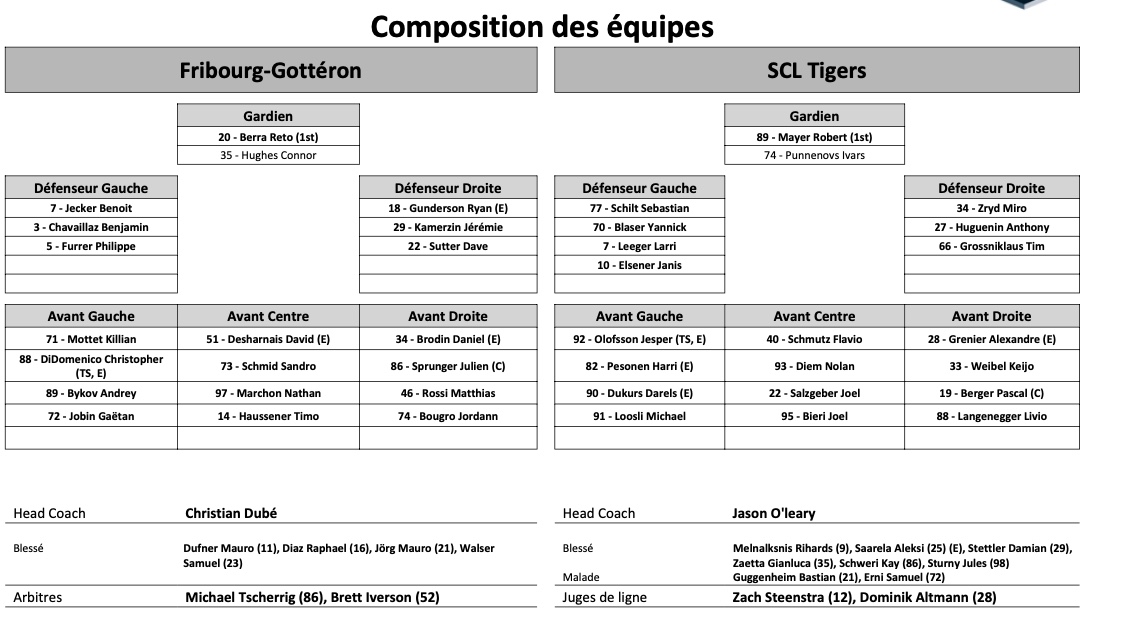Formation des équipes et joueurs indisponibles pour le match Fribourg vs Langnau 20/12/2021 Follow SwissHabs Derniers articles Il y a une heure National League : Zurich file en demi-finale, Genève reprend l'avantage de la glace Il y a une heure Swiss League : une finale entre Sierre et la Chaux-de-Fonds Il y a 5 heures Lino Martschini vise un nouveau contrat après sa grave blessure Il y a 5 heures Formation des équipes et joueurs indisponibles pour le match Lausanne vs Genève Il y a 5 heures Formation des équipes et joueurs indisponibles pour le match Lugano vs Zurich