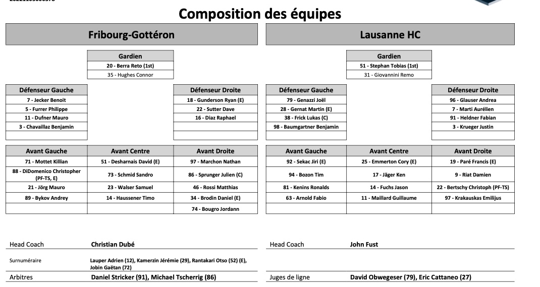 Formation des équipes et joueurs indisponibles pour le match Fribourg vs Lausanne 02/04/2022 Follow SwissHabs Derniers articles Il y a 5 heures Kaleigh Quennec invitée des Puckalistes Il y a 6 heures Gaël Christe restera avec Ajoie la saison prochaine Il y a 8 heures Formation des équipes et joueurs indisponibles pour le match Berne vs Rapperswil Il y a 8 heures Prague accueillera la Coupe du monde de hockey sur sol européen Il y a 11 heures Laure Mériguet de retour à la vie normale après le rêve de Milan-Cortina