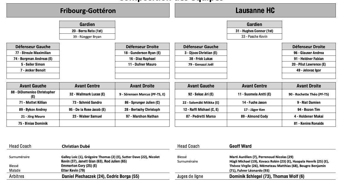 Formation des équipes et joueurs indisponibles pour le match Fribourg vs Lausanne 10/04/2024 Follow SwissHabs Derniers articles Il y a 9 heures Davos pourrait signer un nouveau record de National League Il y a 11 heures Rikard Grönborg ne pourra plus parler à ses joueurs trois matchs durant Il y a 12 heures Martin Filander continuera sans doute son parcours en Suède Il y a 13 heures Jacob de la Rose incertain pour le match de demain Il y a 15 heures Fribourg-Gottéron engage un nouvel étranger